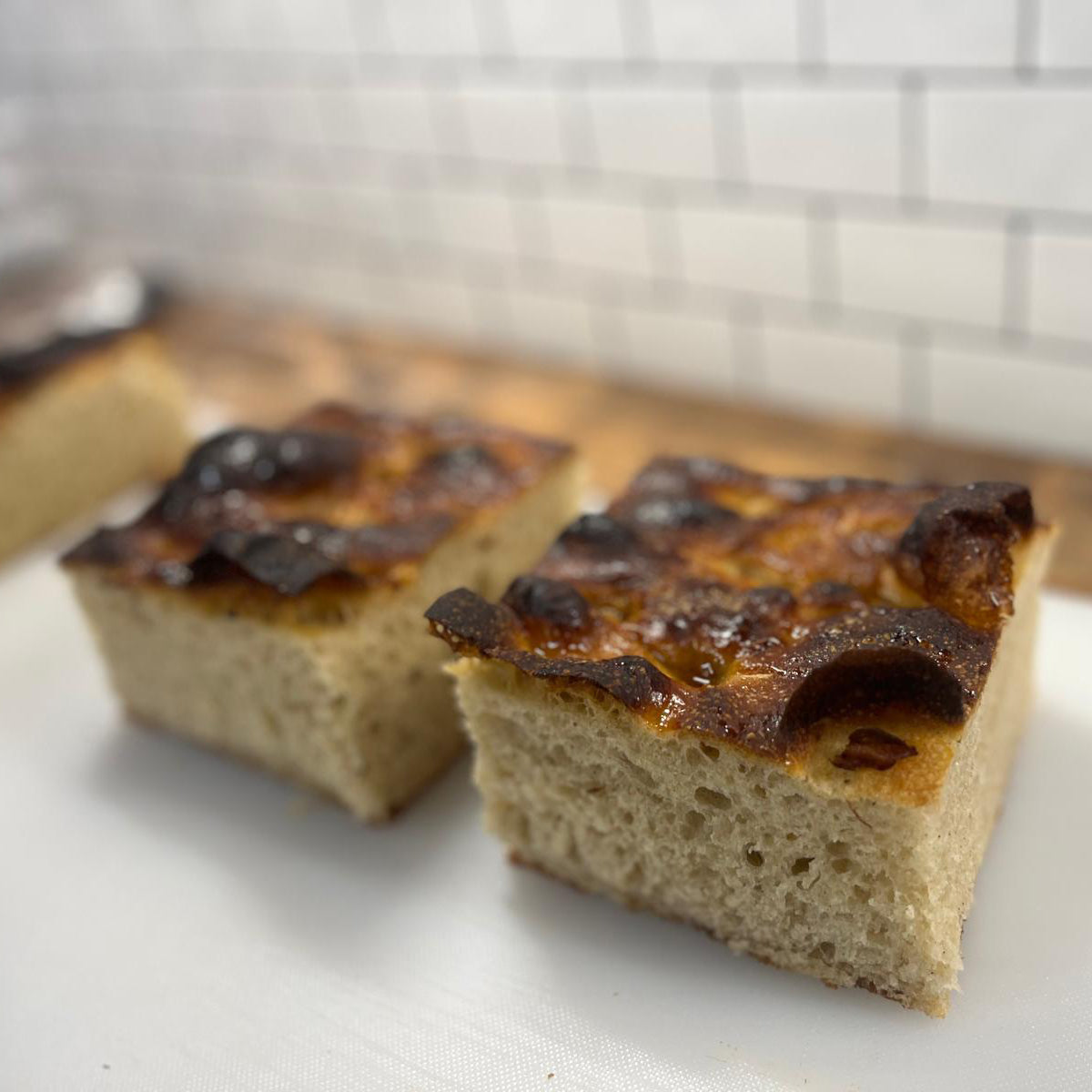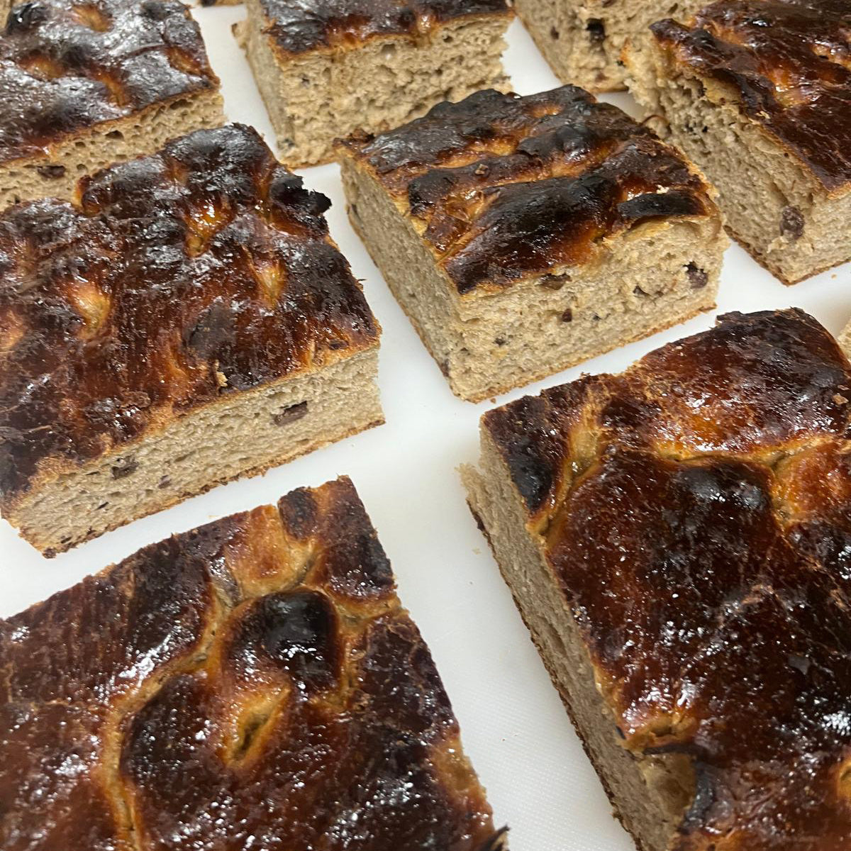 Introducing our Cinnamon Bun Sourdough Focaccia – a delicious blend of tender focaccia and the comforting flavors of a cinnamon bun. Lightly sweetened with maple syrup and dotted with plump raisins, this unique creation brings together the tang of sourdough with a hint of indulgence. Ideal for breakfast or a satisfying snack!