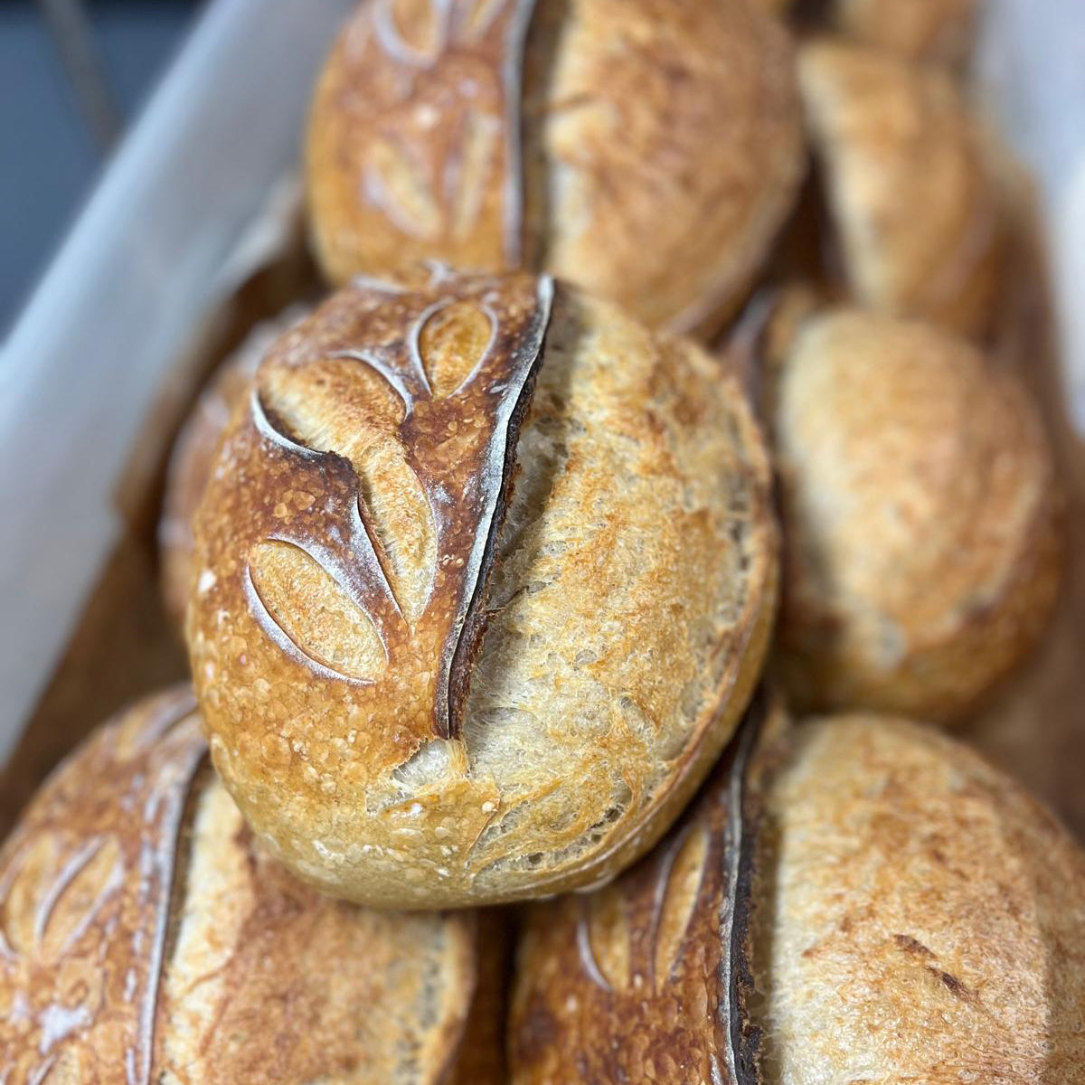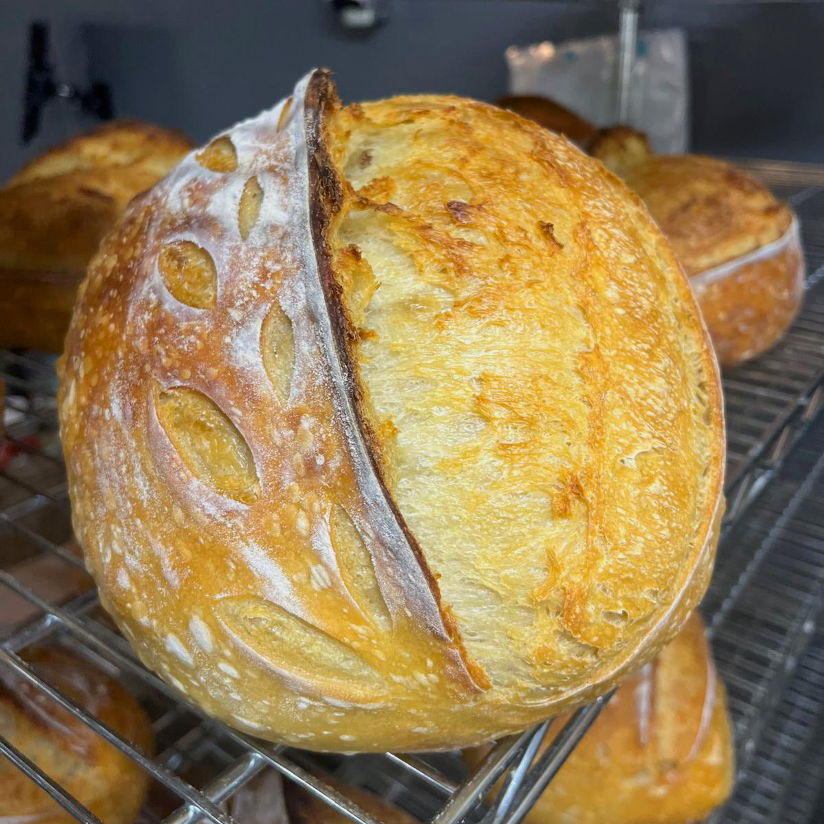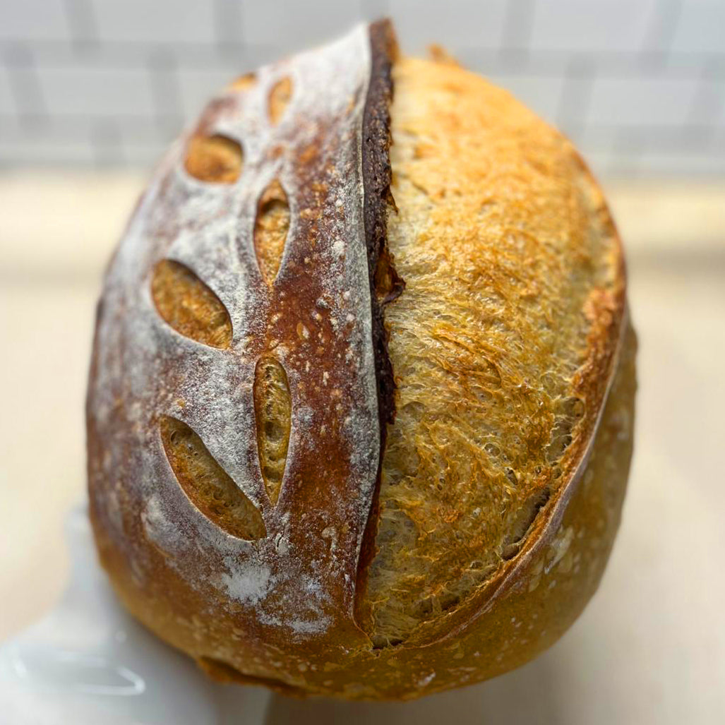 This is the sourdough of dreams, with a crisp crust, a good chew to the interior, a perfect bread for toast, sandwiches, croutons, french toast, paninis, etc. Sourdough is known to be much easier to digest than other breads, as the gluten is partially ‘digested’ during the fermentation process. This bread takes three days to make as there is fermentation, turning and shaping before the bake begins.